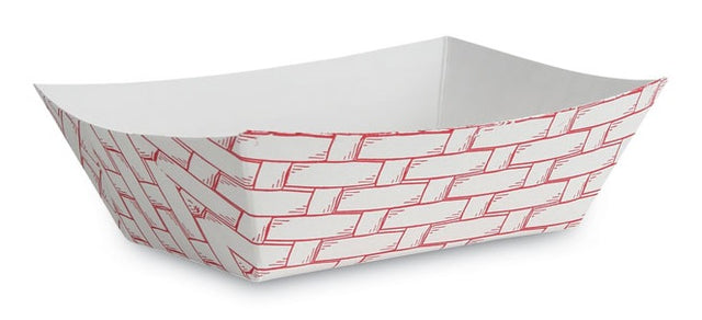 This food boat tray is perfect for hot dogs, nachos, french fries, and anything else you can think of. It's red plaid, holds 1 pound and comes 1,000 per case. It's microwave safe.