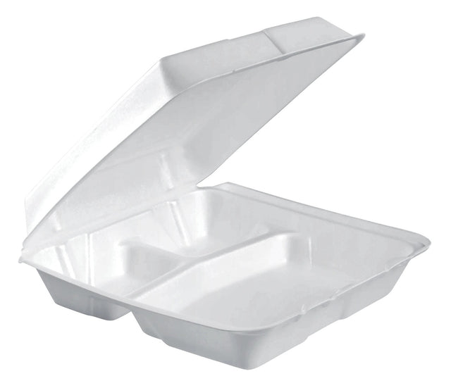 Dart 95HT3R 3 Comp Foam Hinged Container 9-1/2" (Case of 200) Restaurant Disposable Container