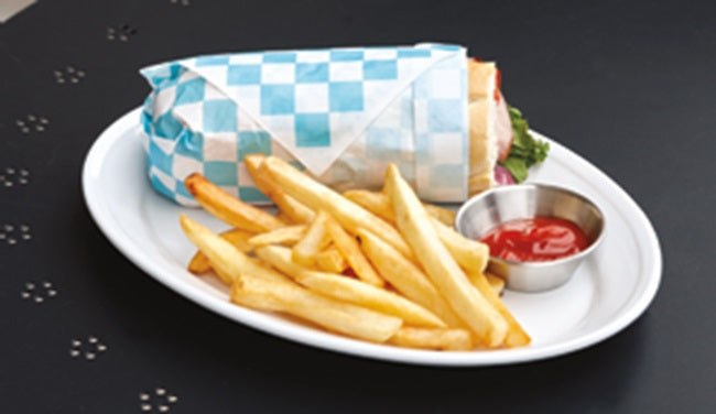 Food-Safe Sandwich/Deli Wrap Paper, 12" x 12", grease-resistant, paper, blue checker on white (1000 pieces per case)