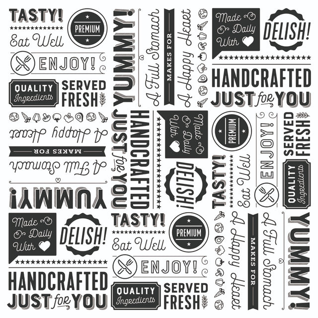Food-Safe Sandwich/Deli Wrap Paper, 12" x 12", grease-resistant, paper, black generic typography theme on white (1000 pieces per case)