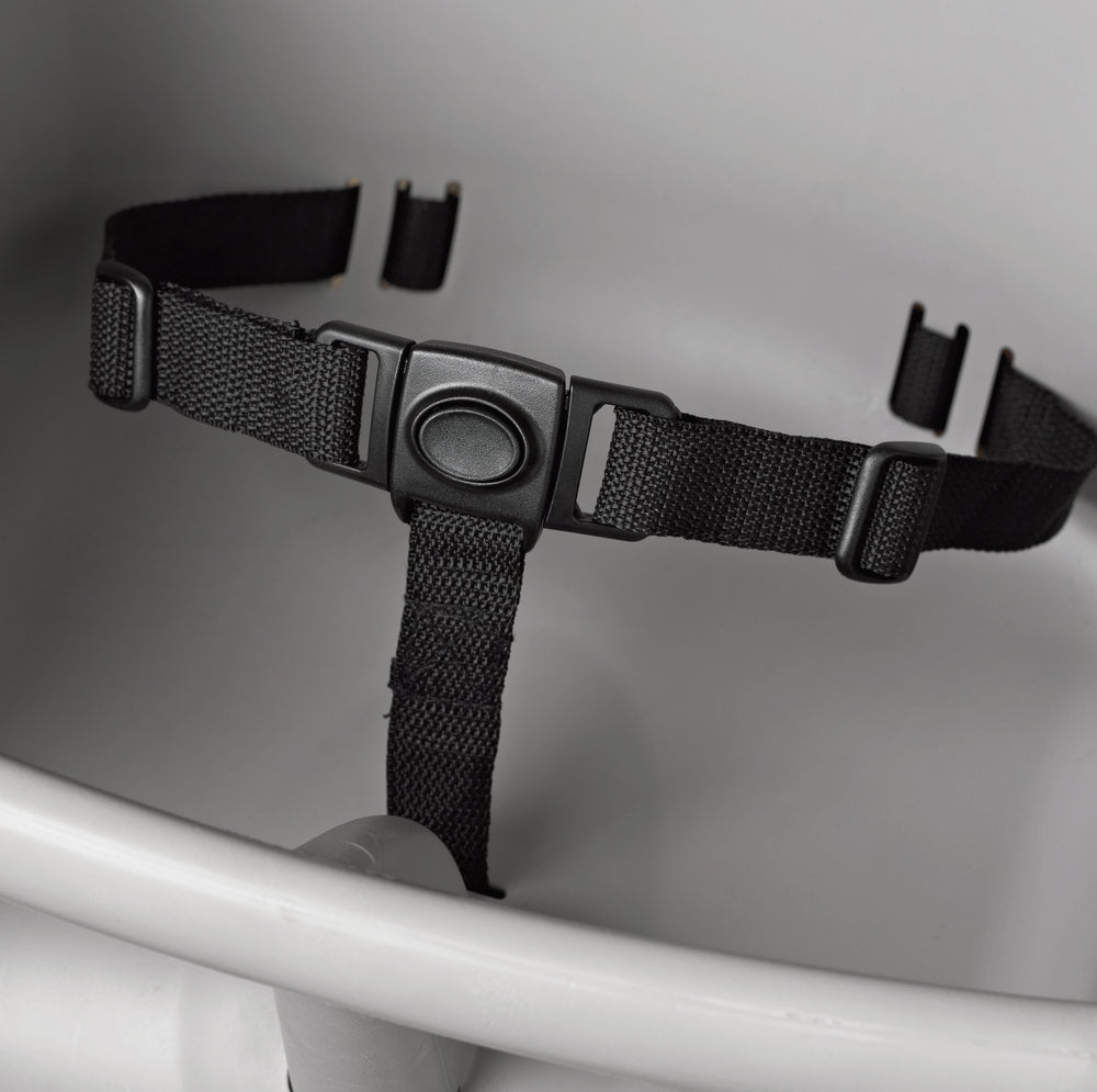 Sturdy Chair™ Youth Seat, without wheels, safety harness with release mechanism, with Microban antimicrobial product protection, stackable, meets ASTM, TUV standards, fit under table without tray, platinum, Made in USA