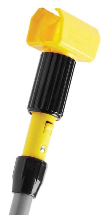 This Gripper Wet Mop Handle is 60" long and constructed from gray, fiberglass with with a yellow plastic head. Clamps 5" mop heads tightly between jaws. Easy to use.