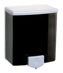 B-40 Liquid Soap Dispenser, 40 oz. capacity, 5-13/16"W x 3-3/16"D x 6-7/8"H, surface mounted, vandal resistant, concealed mounting brackets, corrosion resistant valve, high impact plastic, translucent black, wall mount, for soap, loation or sanitizer, ADA Compliant