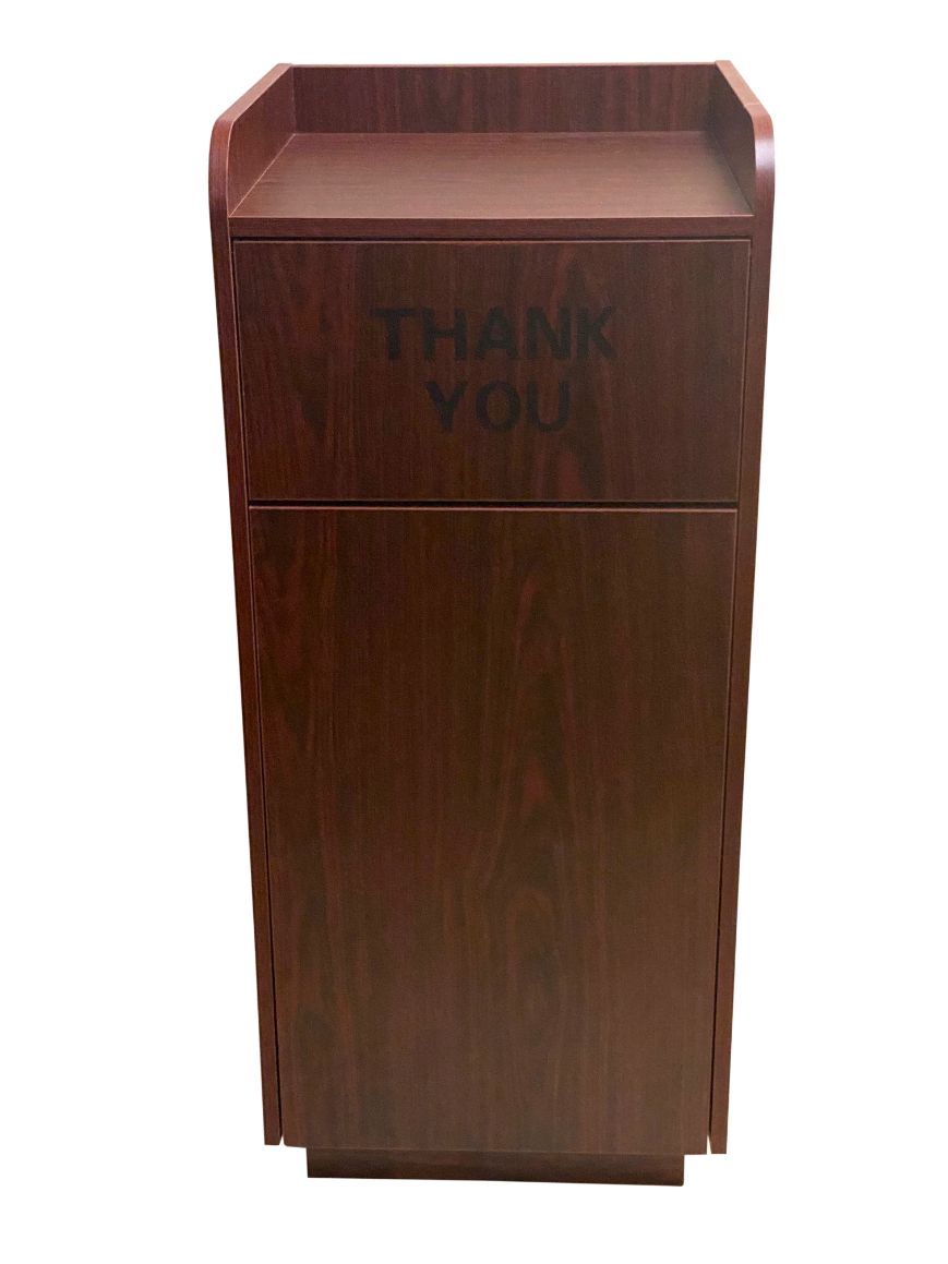 AAA Furniture Wholesale TRASH/MAH Thank You Trash Receptacle with Liner 20-1/4"W x 20"D x 47"H - Mahogany
