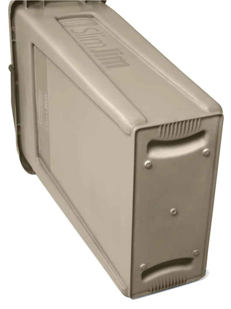 Slim Jim Container, 23 gallon, 22"W x 11"D x 30"H, with venting channels, molded-in handles, general purpose waste, open type without lid, high-impact plastic construction, beige, Made in USA