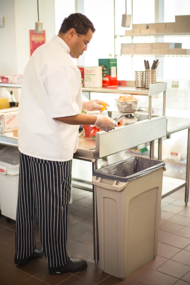 The Rubbermaid Commercial Vented Slim Jim Container is crafted to make waste management compliance easier and reduce strain on workers. Constructed of high quality, commercial-grade materials, these containers feature 4 venting channels that make removing garbage bags up to 80% easier than traditional straight wall receptacles.