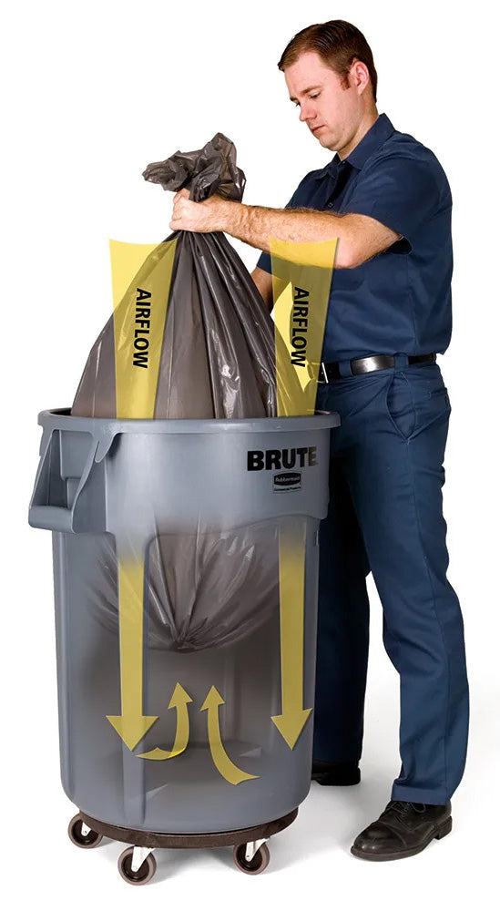 The Rubbermaid Commercial vented BRUTE container has innovative venting channels make lifting out liners up to 50% easier, improving productivity and reducing the risk of injury. The proprietary design constructed with the highest quality material plus a UV inhibitor ensures long life in even the most extreme commercial environments. Guaranteed to never fade, warp, crack, or crush.