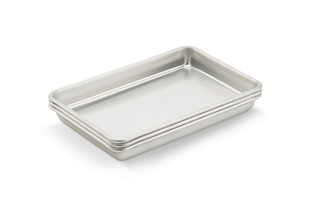 Made of heavy-duty aluminum, the Vollrath® Wear-Ever sheet pan is proven to be 20 percent stronger than the competition. It heats up and cools down quickly, and the pan’s concave bottom flattens for even heating. The natural finish ensures uniform results, and the tapered sides allow for convenient stacking.