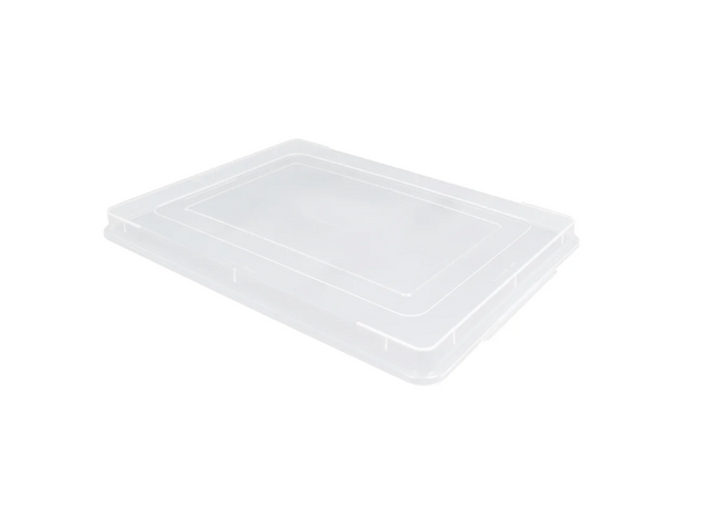 The Vollrath 9002CV sheet pan cover snaps onto full-size pans to keep contents fresh. It is made of clear polypropylene for content visibility. With ridges on the top that ensure safe stacking, the Vollrath 9002CV sheet pan cover maximizes space in the work area.