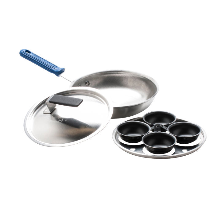 Wear-Ever® Egg Poacher Set, includes: 8" natural finish fry pan with Cool handle®, poacher insert, (4) cups with non-stick coating & cover, aluminum, Made IN USA