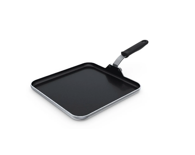 Great for tuna melts, grilled cheese, or pancakes, the Vollrath 702412 griddle pan flaunts a 12-inch-wide by 12-inch-deep by 3⁄4-inch high cooking surface finished with a CeramiGuard® II nonstick coating. Its square body is designed with three layers—a 3004 aluminum core that effectively conducts and distributes heat, a sturdy 18/0 stainless steel exterior that's compatible with gas, electric, or induction ranges, and a durable 18/8 stainless steel interior. Users can move the pan to and from the burner using its heat-resistant silicone handle, which withstands continuous temperatures of 450 degrees Fahrenheit or intermittent exposure to temperatures as high as 600 degrees Fahrenheit. For long-term preservation, this piece should be cleaned gently by hand.