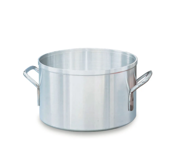 Lots of soup, risotto, paella, and stew recipes call for a vegetable, beef, chicken, or fish stock to be used as the foundation for the dish. Therefore, just about every cook and chef needs a solid pot to make their own stock from scratch. When needing a pot like this, look no further than the Vollrath 67426 Impact Resistant Wear-Ever Classic Stock Pot. Constructed out of aluminum, with double-thick rims and bottoms, this piece of equipment is nearly immune to dents and will distribute heat evenly. Because this pot has a wider diameter, there is a larger surface area and you can trust that there will be thorough simmering of products. Built in America, you can trust that you're getting a quality product. To prepare the delicious and savory stocks that will be used as the basis or flavoring agent for many a dish, use the Vollrath 67426.