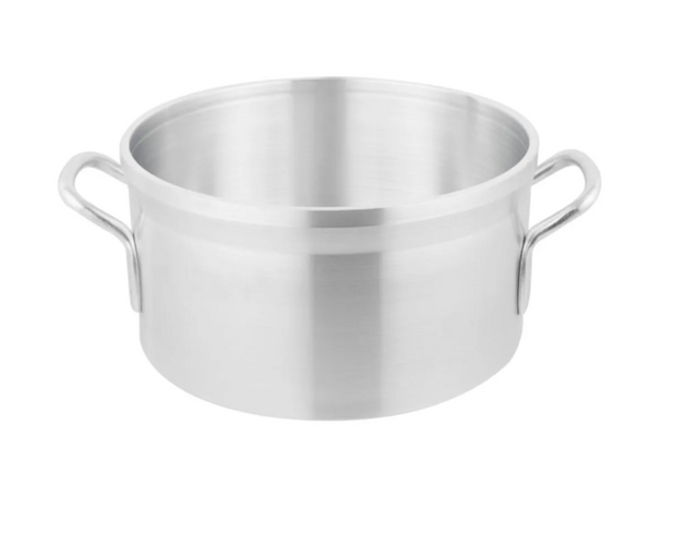 The Vollrath 68413 Classic Select™ sauce pot has a 12-quart capacity and measures 12 inches in inside diameter and 63⁄8 inches deep. Designed to simmer liquids, stews, and soups, it's made of heavy-duty aluminum to ensure even heating during cooking. Its wide diameter and short sides provide ample space to stir product and add ingredients. To withstand high temperatures for extended time periods, the top and bottom have a double-thick composition for extra strength. Handles welded on both sides of the pot offer a secure grip.