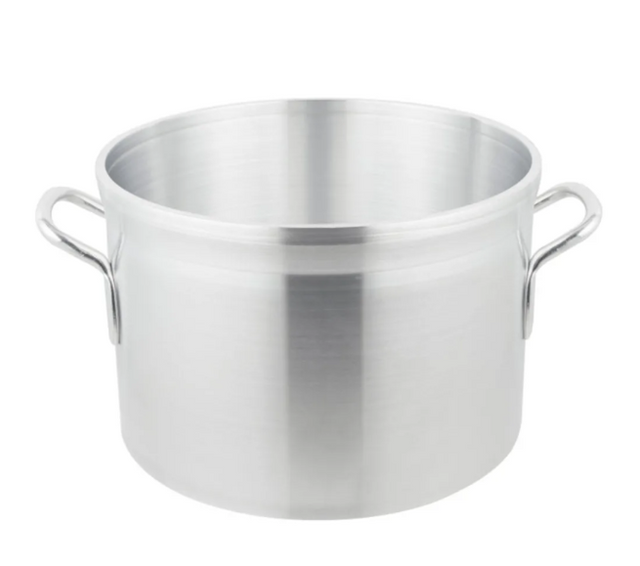 The Vollrath 68420 Wear-Ever® Classic Select™ sauce pot has a 20-quart capacity; its 13-inch interior diameter and 9-inch interior depth provide enough space for users to stir product while reducing splatter risk. To withstand long-term exposure to high temperatures and wear from bustling kitchen environments, the top and bottom have a double-thick structure for extra strength. This heavy-duty 3004 aluminum unit has minimal risk of cold spots because of aluminum's high conductivity. A natural finish is applied to the exterior to create a sleek look and streamline cleaning.