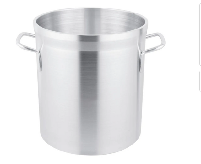 Ideal for boiling liquids, stews, and soups, the Vollrath 68616 Classic Select™ stock pot has a 15-quart capacity. This unit's heavy-duty 3004 aluminum construction withstands common wear while distributing uniform heat. Its top and bottom have a double-thick design to endure high-heat uses for long periods of time. Its 10-inch inside diameter and 11.37 inch inside depth provide ample space for users to stir product and add extra ingredients; it also reduces splatter risk onto the user or nearby surfaces. For secure lifting, it has two welded aluminum handles integrated on both sides.