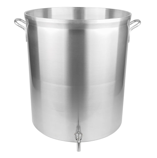 The Vollrath 68701 stock pot has a 120-gallon capacity—it can be used to cater large events or service restaurant kitchens that serve significant amounts of food to customers. It's tall and narrow, concentrating the bubbling of liquids to enhance product reduction for soups and broths. Because it is constructed of aluminum, it can handle acidic foods such as tomatoes. A faucet in the bottom of the pan provides a method of draining without lifting the pot.