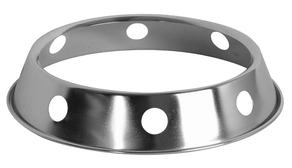- Steel wok rack, with open top and perforated sides on flat steady rim