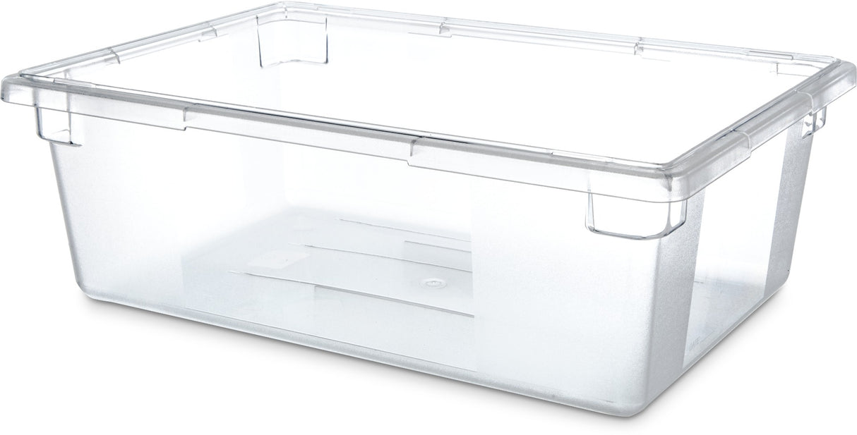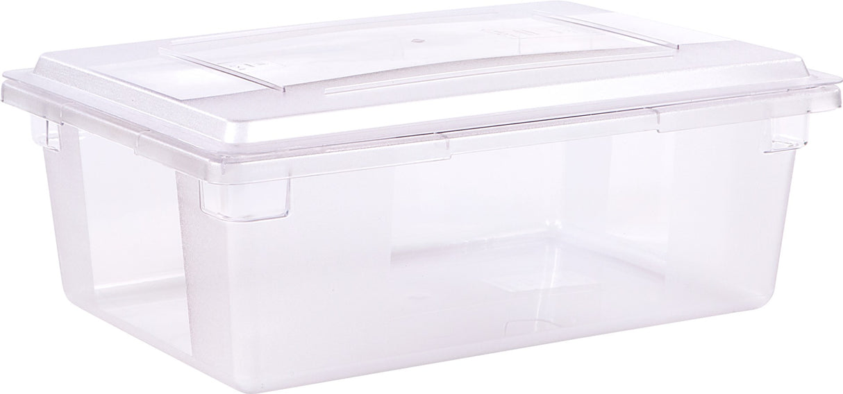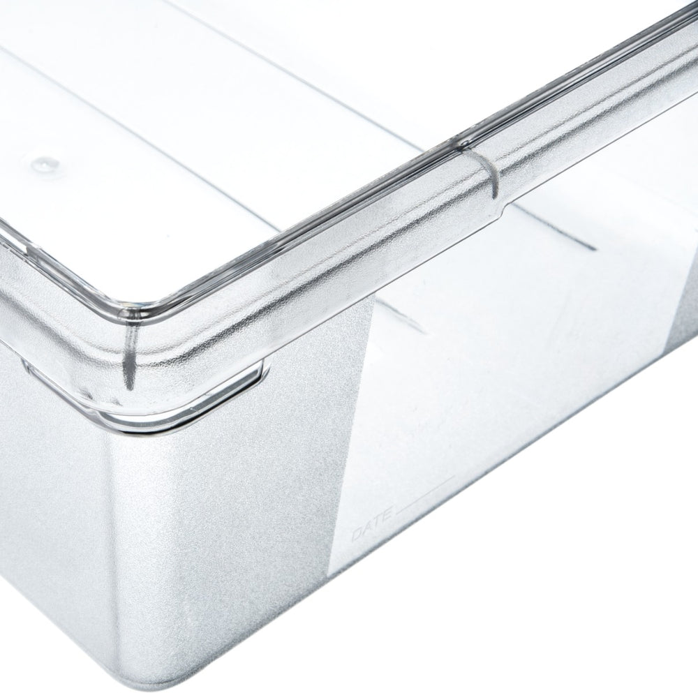 1062207 StorPlus Food Storage Box 12-1/2 gallon 26inL x 18inW x 9inH reinforced corners stackable date indicators easy-grip handles break-resistant dishwasher safe textured non-slip finish polycarbonate clear NSF Made in USA