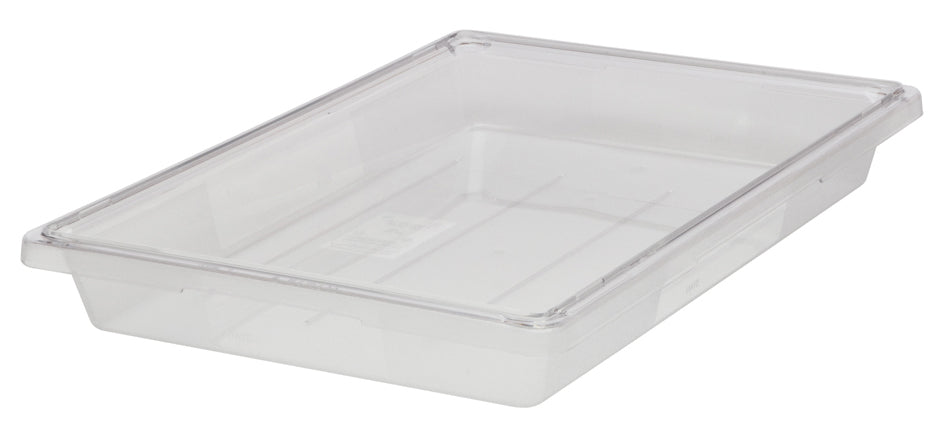 Food/Tote Box, 5 gallon, 26"L x 18"W x 3-1/2"D, dishwasher/freezer safe, date control panel, stain-resistant, polycarbonate, clear, NSF, Made in USA