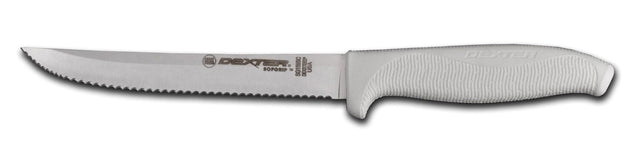 Dexter-Russell 24213 SofGrip Scalloped Utility Slicer Knife with 6" High-Carbon Steel Blade and White Rubber Handle