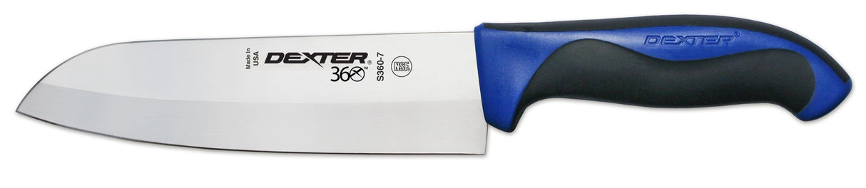 Dexter® 360™ (S360-7C-PCP) Santoku Knife, 7", stamped, straight edge, DEXSTEEL™ stain free, high carbon steel, polypropylene/Santoprene® handle, blue, NSF