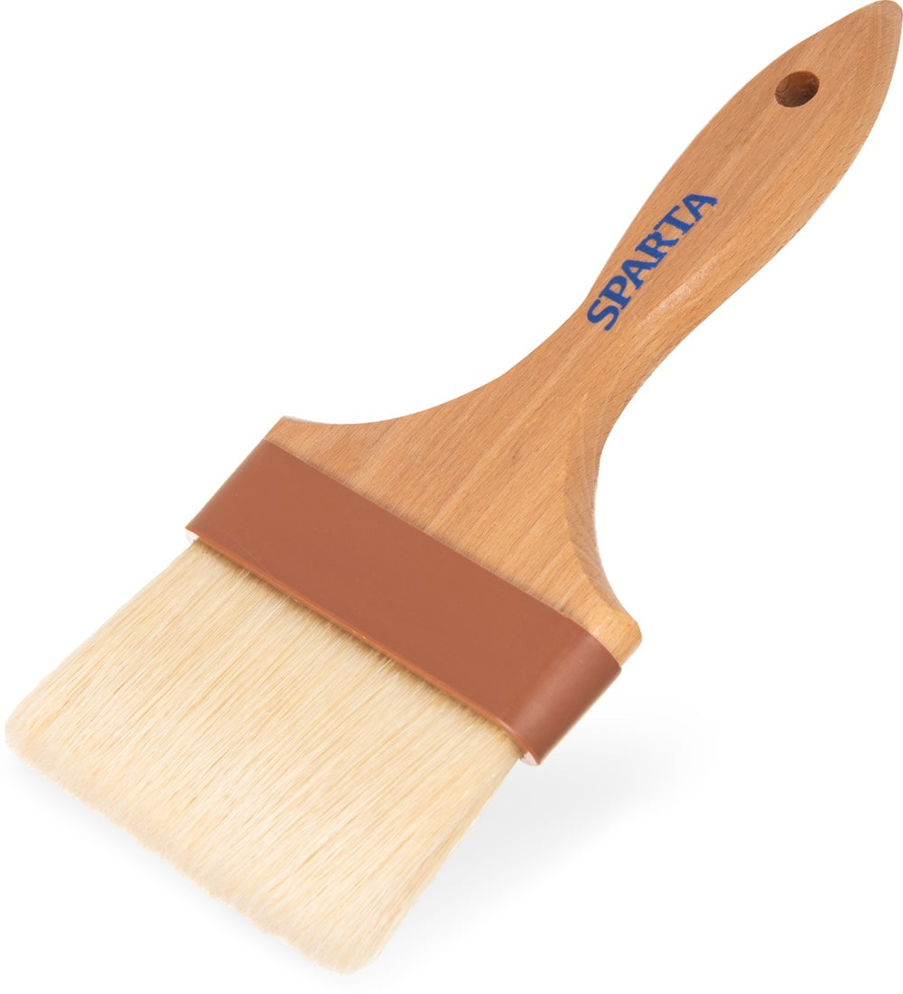 Sparta Chef Series Basting Brush, 4" wide epoxy-set bristles, double-boiled, heat resistant up to 500°F, water-resistant, brown plastic ferrules, 6-1/4" long lacquered hardwood handle, boars hair, bleached