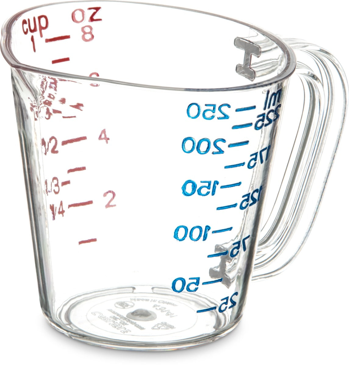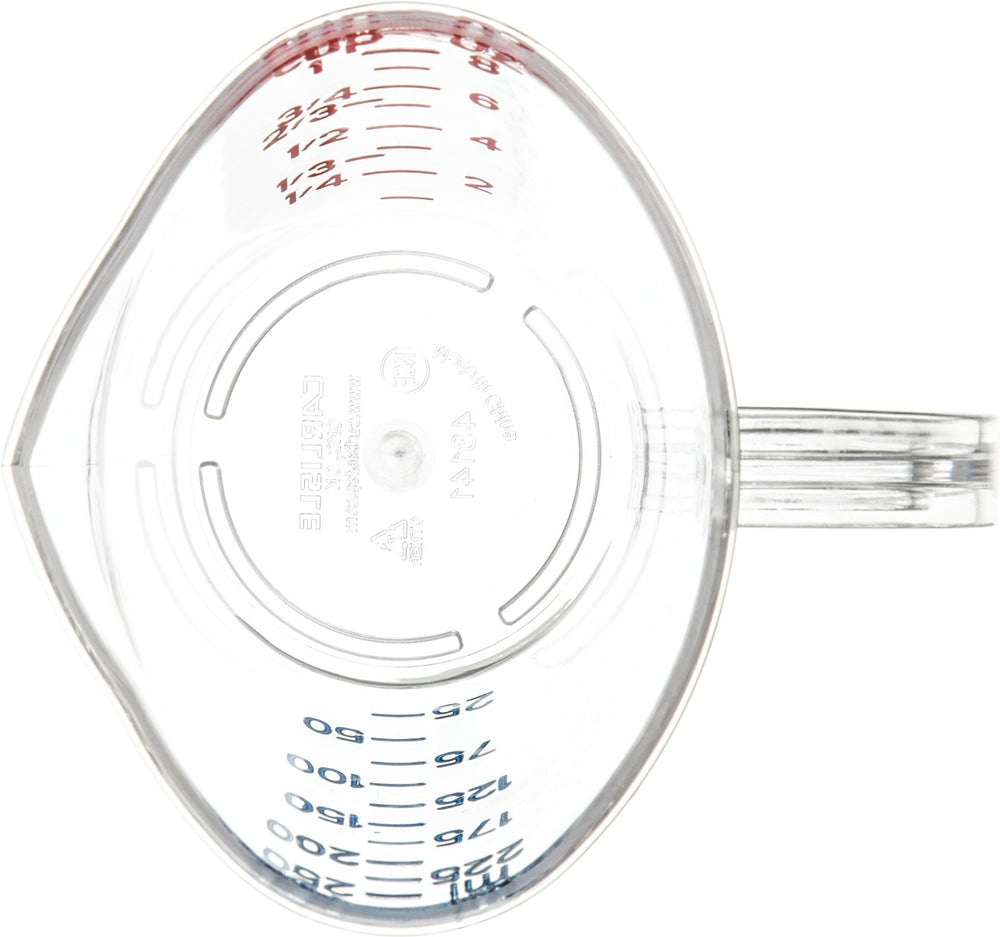 4314107 Measuring Cup 8 oz(1 cup) capacity oval pour spout nestable US/Metric measurements C-handle dishwasher safe polycarbonate clear NSF