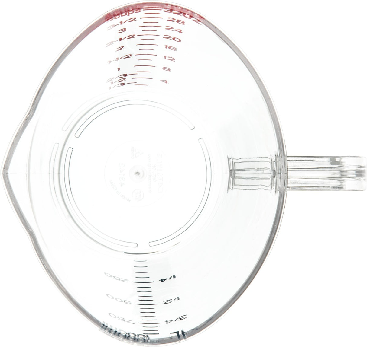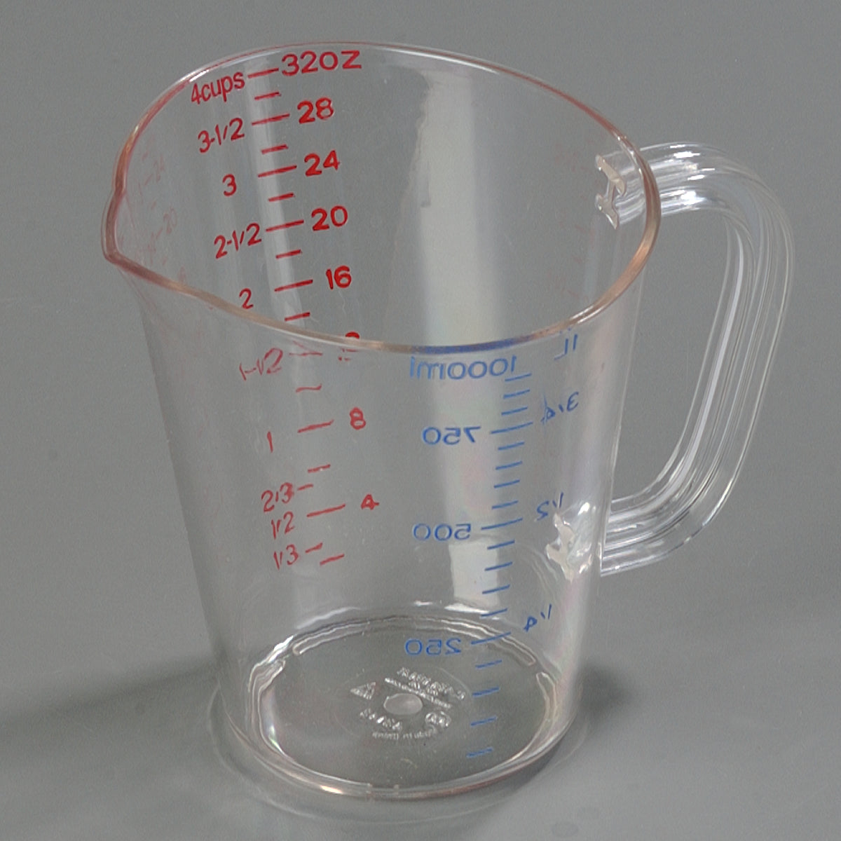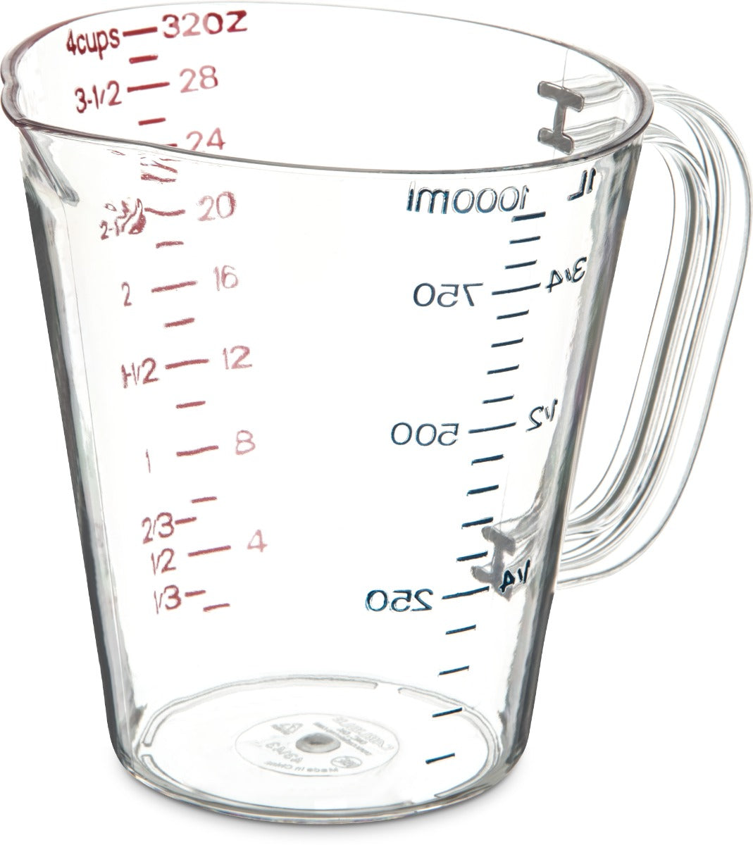 4314307 Measuring Cup 32 oz(1 qt.) capacity oval pour spout nestable US/Metric measurements C-handle dishwasher safe polycarbonate clear NSF