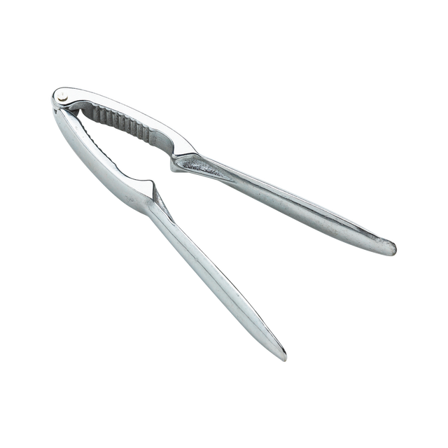 Crack open lobsters, crabs, or nuts using this 5-1/2" long, polished, chrome-plated cracker. It has curved grip.