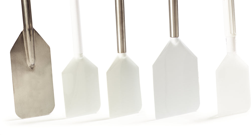 For lower viscosity & temperature and general stirring & mixing uses, the durable design of this Nylon Paddle and Handle Scraper combination is just right.