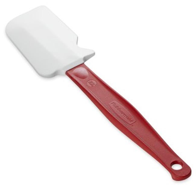 This high heat scraper / spatula by Rubbermaid is a remarkable tool that can resist heat up to 500 degrees Fahrenheit. The easy to clean, flat-shaped blade is made from stain-resistant silicone, allowing easy scraping and spreading, and it won't scratch your valuable cookware. The handle is made from durable, red, nylon. Once you've used them, you won't settle for anything else.