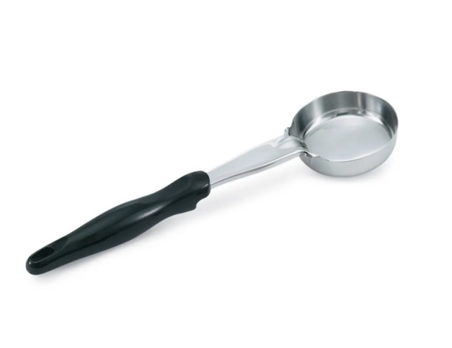 Designed for portioning sides, such as mashed potatoes and macaroni and cheese, the Vollrath 6433320 spoodle is equipped with a solid, round bowl that holds as much as 3 ounces. The 2.93-inch-diameter bowl has an 2.25 stainless steel construction to endure long-term use, resisting corrosion in humid environments. The capacity is marked on the shaft, and the nylon handle’s textured surface is comfortable to hold and can be used in temperatures as high as 450 degrees Fahrenheit. To prevent it from slipping into food pans, a stopper notch is built into the handle. It’s also treated with a natural antimicrobial agent that slows bacterial growth. Overall, it has a 13.06-inch length, so users can comfortably reach into deep food containers.