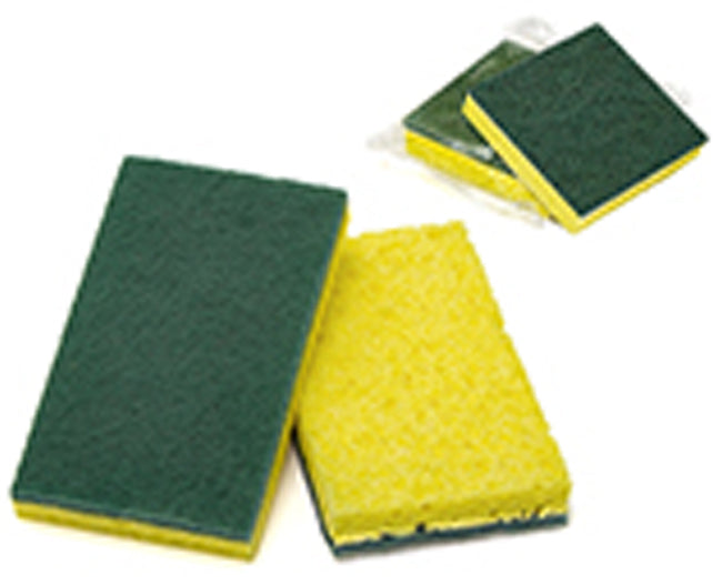 Yellow cellulose sponge with medium-duty green pad for general cleaning. Cleans ovens, walls, countertops, sinks, bathrooms and tables. Moist and individually wrapped. Rinses easily. Anti-microbial treated.