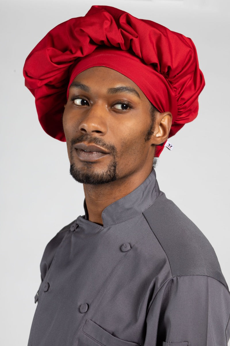 Chef Hat, adjustable hook & loop closure, 65/35 Poly/Cotton Poplin, 5.25 oz, one size, red