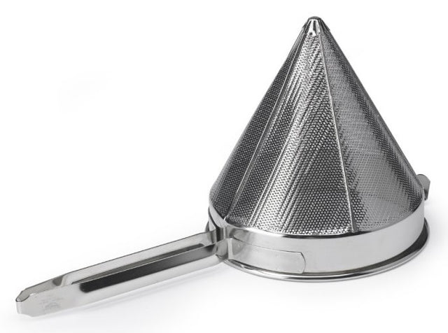 The china cap fine strainer by Vollrath helps you remove lumps from sauces, separate solid food items from cooking liquid, sift flour, dust baked goods with powdered sugar and much more. Made of durable stainless steel, this strainer features a 1/16-inch fine mesh that ensures lump-free results. The bowl clip helps the strainer hook onto a bowl or pot for impressive convenience, and the welded handle provides a steady, comfortable grip. With a simple, efficient design, this strainer allows you to work quickly and efficiently.