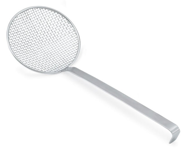 The heavy-duty wire mesh skimmer by Vollrath is an excellent choice for removing food from hot fryers, deep pots and more. The strong construction promises years of service, and the wire mesh allows liquid to drain away quickly and easily. The long, thick handle allows you to maintain a safe distance from hot temperatures and offers a comfortable grip, while the hang-hook at the end provides a convenient storage solution.