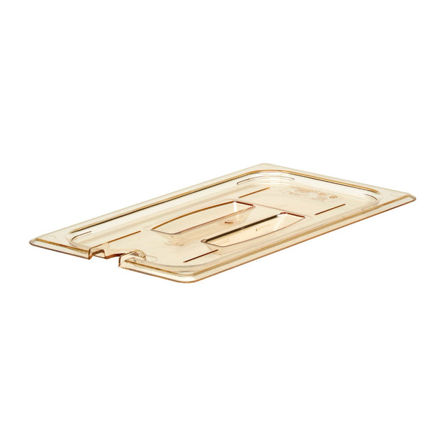 Cambro 30HPCHN150 H-Pan Plastic High Heat Food Pan Cover with Handle & Spoon Notch - 1/3 Size - Amber