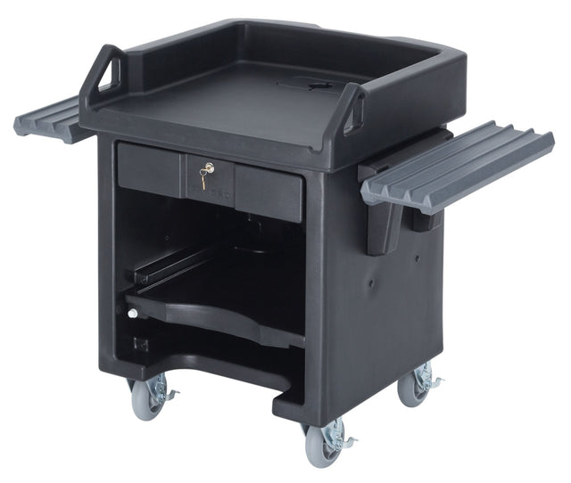 Cambro VCSWRHD110 Versa Cash Register Cart with Dual Adjustable Rails, Lockable Center Drawer and Heavy Duty Casters 52-3/4"L x 32"W x 43-3/4"H - Black