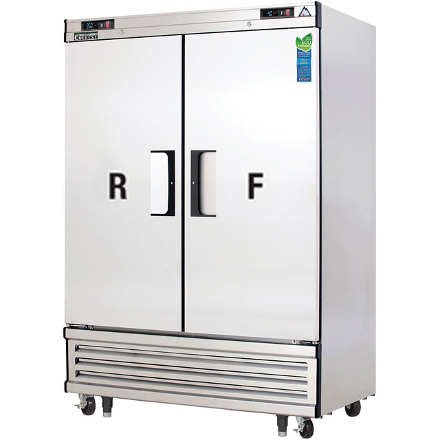 Everest Refrigeration EBRF2 2-Section 2 Solid Door Reach-In Dual Temp Refrigerator/Freezer Combo 55" - 115V