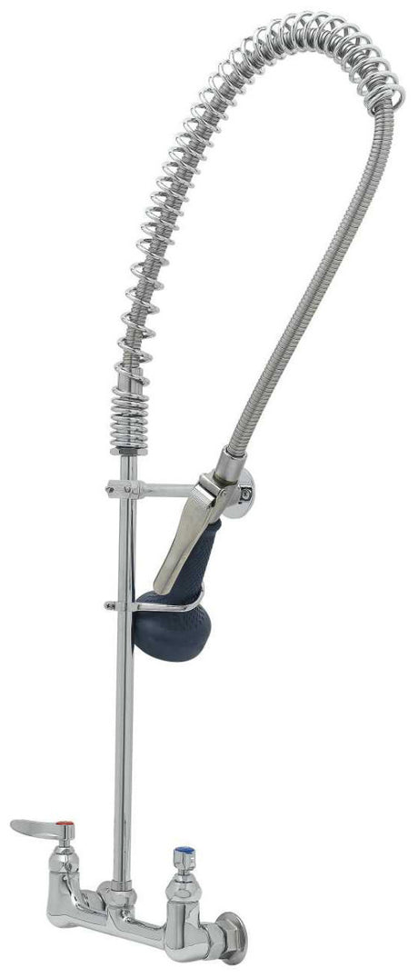 T&S Brass B-0133-B08C EasyInstall Wall Mounted 33-1/4"H Pre-Rinse Faucet with Adjustable 8" Centers, Ergonomic Low Flow Spray Valve, 44" Hose, and 6" Wall Bracket