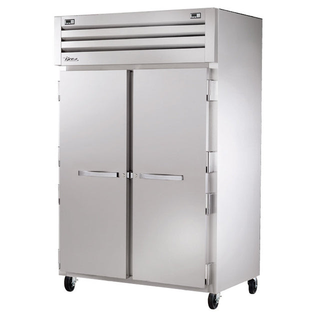 One of our highest recommended units is the STR2DT-2S, a two in one refrigerator/freezer combo from True. The cabinet is constructed with high density, polyurethane insulation. The exterior and the two full height doors are stainless steel. The doors include a lifetime guaranteed heavy-duty, all metal working door handles. These doors include a positive seal, self closing feature, and a stay open mechanism as well. The interior is aluminum, it includes LED lights and three heavy-duty, chrome plated wire shelves per section.