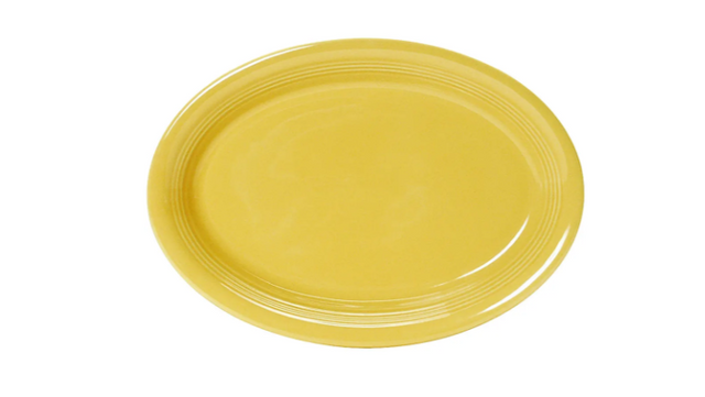 Ideal for serving plates of nachos or fresh bread, the Tuxton CSH-1142 platter measures 111⁄2 inches long by 83⁄4 inches wide. This oval piece comes in saffron yellow to add a pleasant pop of color to the table. Constructed of fully vitrified ceramic, it's sturdy, nonporous, and oven and microwave safe. This platter can be washed in a dishmachine after use.