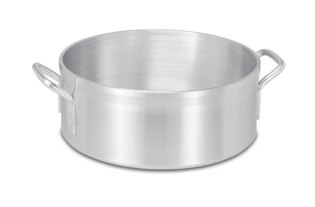The Vollrath 67228 Wear-Ever® Jacob's Pride® braising pot is a multi-functional piece of cookware that enables the user to boil, brown, simmer, sauté, and braise all in one pot. Because of its wide bottom, employees can use this pot to quickly brown large cuts of meat or simmer foods using only a small amount of liquid, preventing sogginess. It's made of aluminum, a cookware material that is lightweight, heats up quickly, and distributes heat evenly. The handles are solid-welded for additional stability when lifting or moving the full pot.