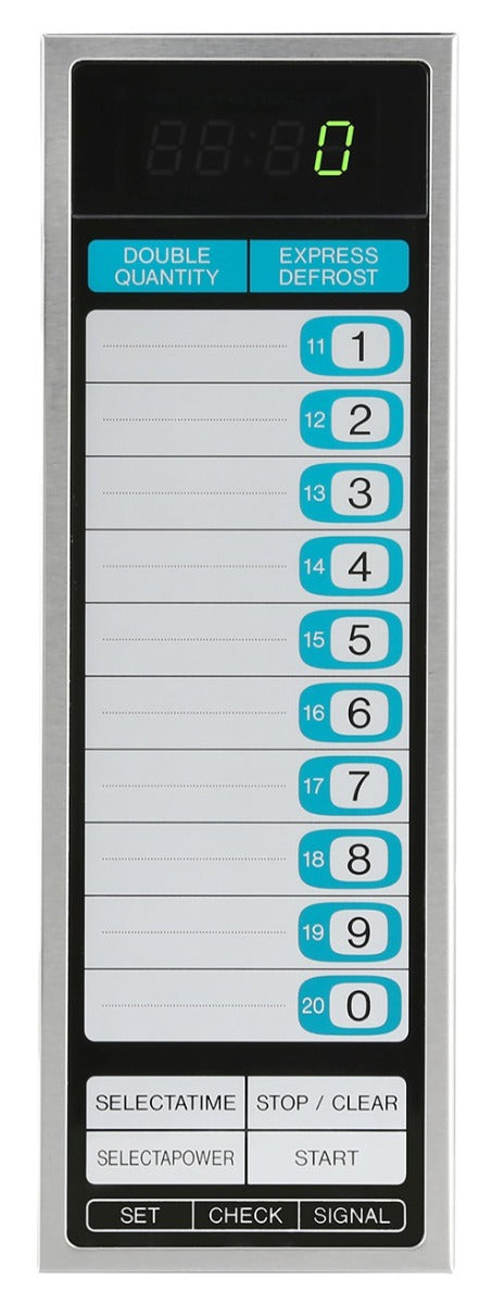 Microwave Oven, 2100 watts, 0.7 cu. ft. capacity, stainless steel door, cavity & outer wrapper, dual magnetron system, programmable timer, durable side-hinged see-thru door, Express Defrost™, 10 computerized touch pads, 11 power levels, 20-pad cap., SelectaPower™, 3-stage cooking, double quantity, 230/208v/60/1-ph, 14.5/15.5 amp, NEMA 6-20P, UL, NSF