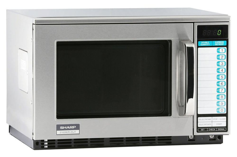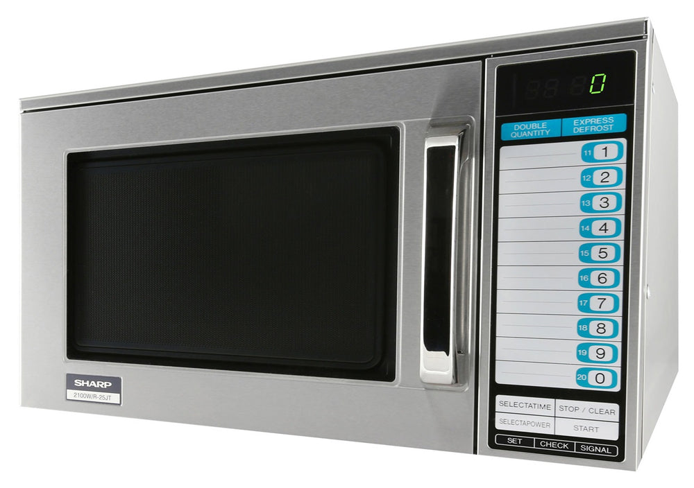 With its 2,100-watt output, the Sharp R25JTF heavy-duty commercial microwave oven is built for volume use and speed cooking. Designed for busy kitchens where speed and efficiency are essential, stackability brings added convenience, while rugged construction equals the exceptional value that’s built to last. The Heavy-Duty series offers a range of wattage output to avoid purchasing units that are over or underpowered. This allows kitchens to be outfitted to specific cooking needs and ultimately keeps electricity costs down.