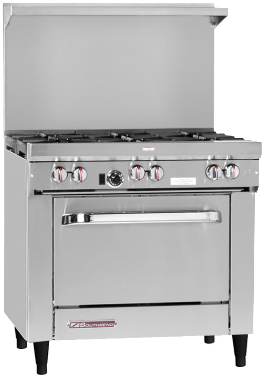 The Southbend S36D is the perfect addition for any busy kitchen that needs a unit able to perform multiple tasks at once. The front, sides, shelf, and rail with closed, welded end caps that are all constructed of stainless-steel. This unit is built to withstand the most hectic of kitchens, and should last many years. It has six 28,000 BTU open top burners with removable cast iron grate tops for hassle free cleaning. The rear burners can hold a stock pot that measures up to 14"