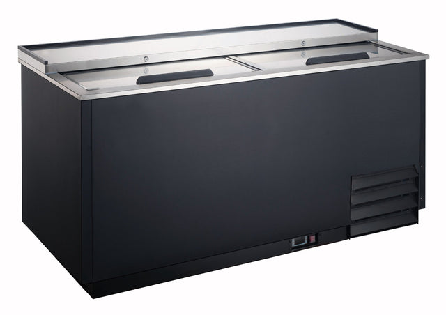 Adcraft USGF-2L U-STAR 2-Section 2 Solid Slide Lid Glass Froster 50" - Holds (250) 8" Mugs or (240) 10 oz. Steins - 115v