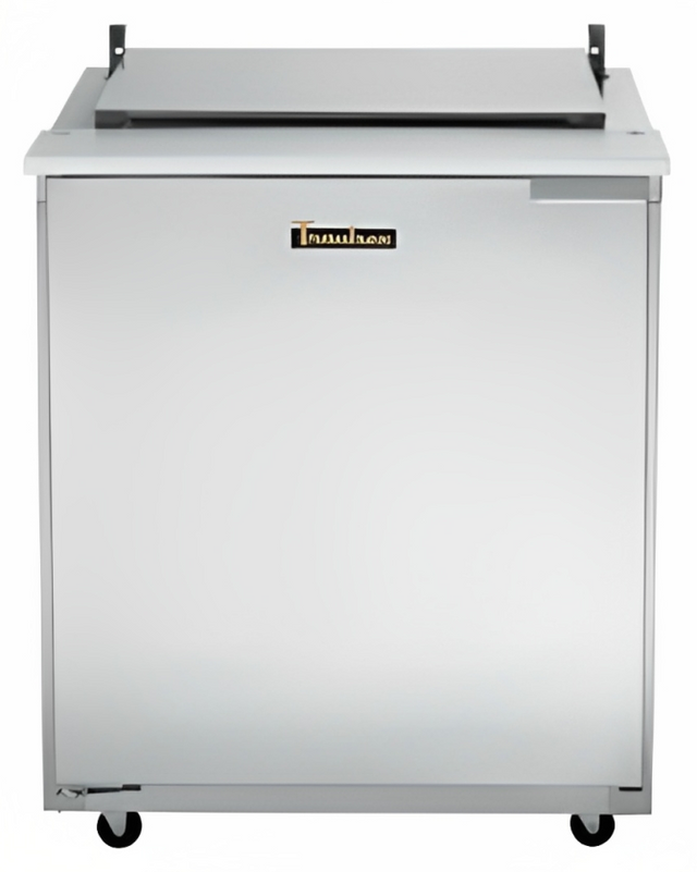 The UST279-L from Traulsen is one of most popular and efficient products. The exterior is constructed using stainless steel and the interior uses anodized aluminum. It has 2" thick, high density, non-CFC, foamed in place polyurethane insulation located throughout the cabinet and doors. A roll-top lid that can serve as an over shelf is included. The single door includes both a self closing and stay open mechanism. Each model is supplied with a full complement of 4" deep, plastic, 1/6 size pans and dividers. This prep table exclusively comes with the ability to hold 6" deep top pans and keep them at a safe and nice temperature for your customers. A 12" deep, full-length, reversible white nylon cutting board is also included.