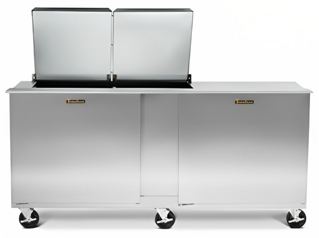 The UST7218-LL from Traulsen is one of most popular and efficient products. The exterior is constructed using stainless steel and the interior uses anodized aluminum. It has 2" thick, high density, non-CFC, foamed in place polyurethane insulation located throughout the cabinet and doors. A roll-top lid that can serve as an over shelf is included. The doors include both a self closing and stay open mechanism. Each model is supplied with a full complement of 4" deep, plastic, 1/6 size pans and dividers. This prep table exclusively comes with the ability to hold 6" deep top pans and keep them at a safe and nice temperature for your customers. A 12" deep, full-length, reversible white nylon cutting board is also included.