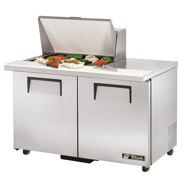 True TSSU-48-12M-B-HC 2-Section 2 Door Mega Top Refrigerated Salad/Sandwich Prep Table 48" - Holds (12) 1/6 Size Pans - 115v